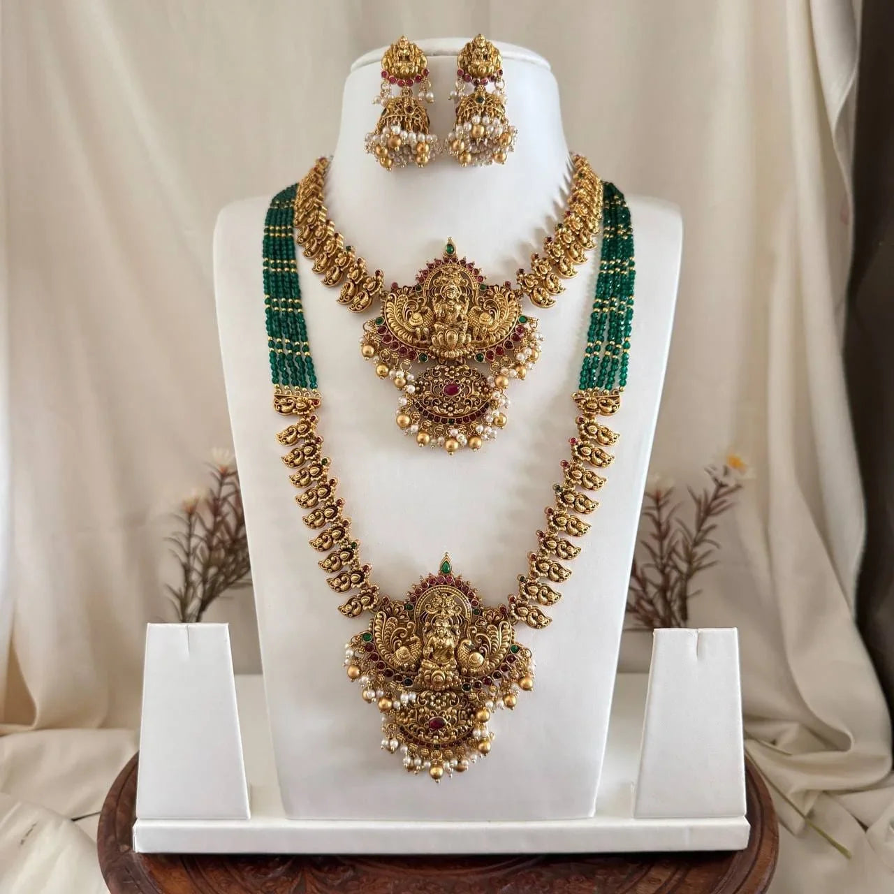 Adorned with a breathtaking selection of Zircon AD, our Antique Necklaces exude luxury and opulence. Each stone is carefully chosen for its exceptional quality and brilliance, effortlessly adding a touch of sparkle and glamour to every necklace. Notably, whether it’s the fiery red of the rubies, the lush green of the emeralds, or the dazzling clarity of the zircon AD stones, each gemstone complements the antique gold finish perfectly, creating a captivating contrast that effortlessly catches the eye.