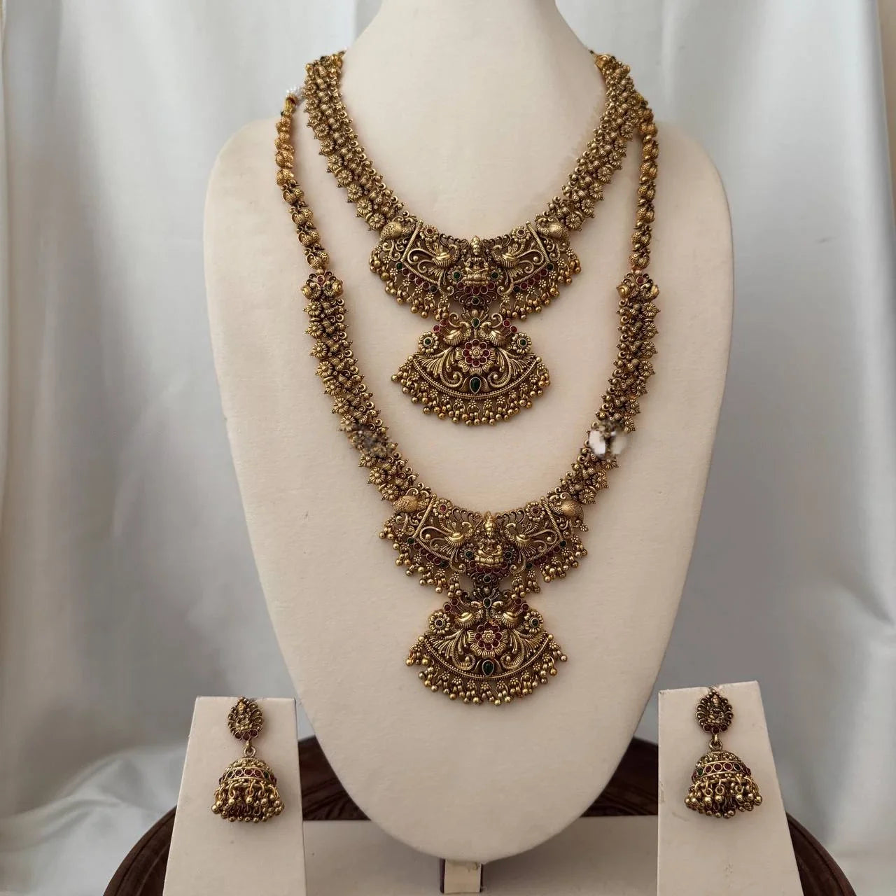 Adorned with a breathtaking selection of Zircon AD, our Antique Necklaces exude luxury and opulence. Each stone is carefully chosen for its exceptional quality and brilliance, effortlessly adding a touch of sparkle and glamour to every necklace. Notably, whether it’s the fiery red of the rubies, the lush green of the emeralds, or the dazzling clarity of the zircon AD stones, each gemstone complements the antique gold finish perfectly, creating a captivating contrast that effortlessly catches the eye.