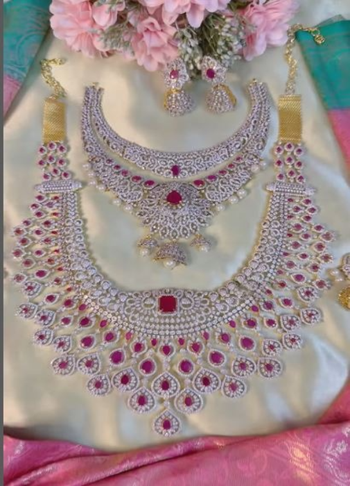 Diamond look statement necklace with Pink stones. DM us for Combo