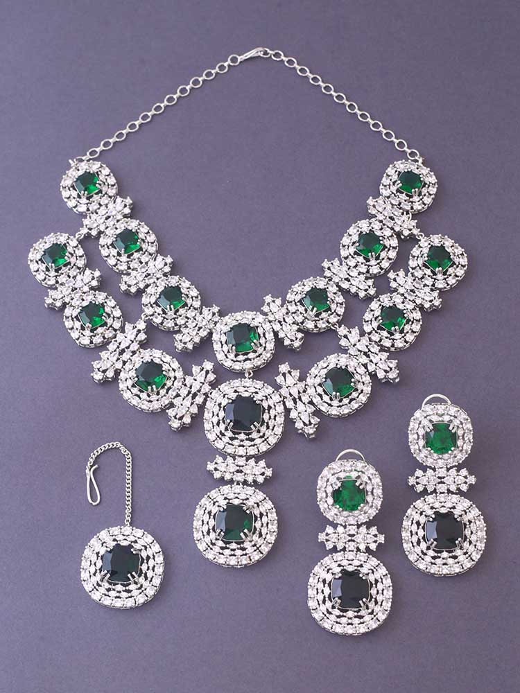 Premium quality american diamond set with superb gemstones crafted for festive wedding and your upcoming special occasions.