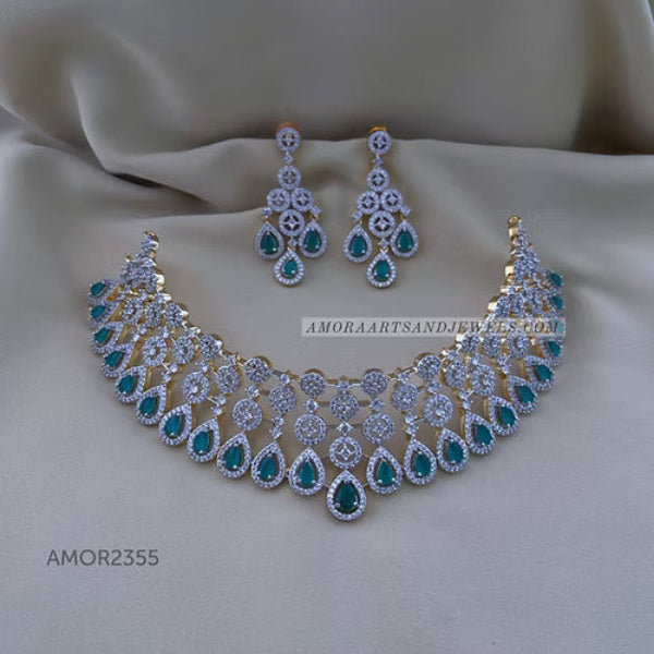 Silver Polished Choker - Green